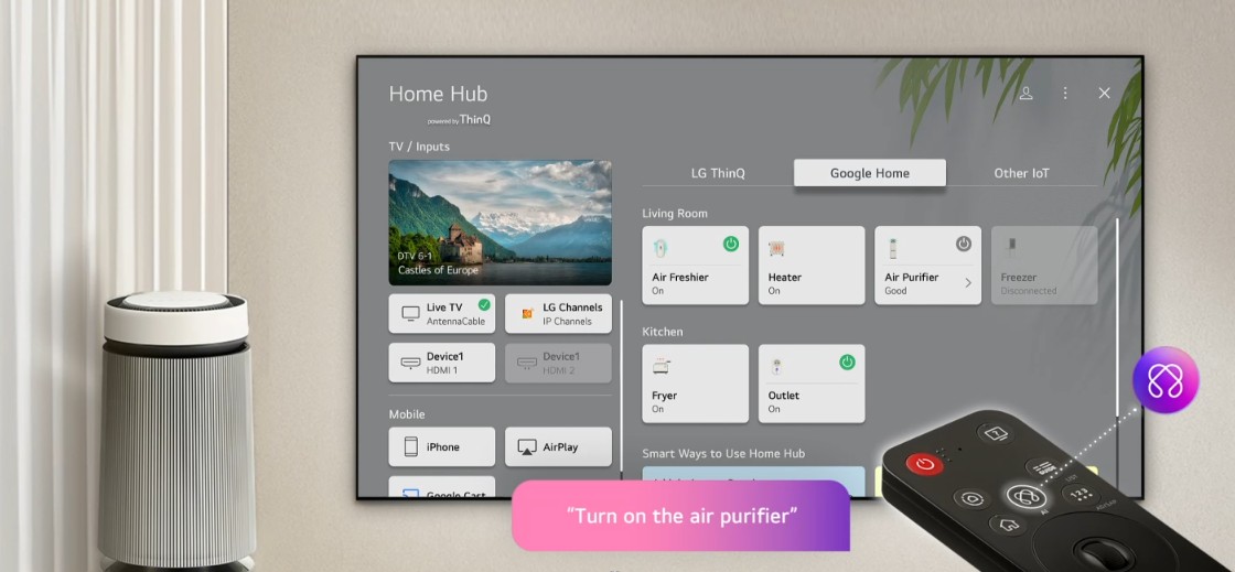 Gestiona tus electrodomésticos LG, junto con tus dispositivos Google Home y mucho más. Experimenta la máxima comodidad de controlar toda tu casa a través de un único e intuitivo panel de control.