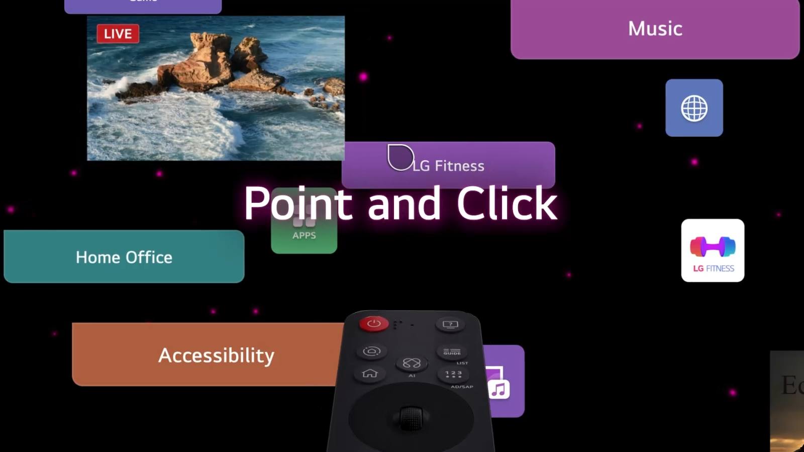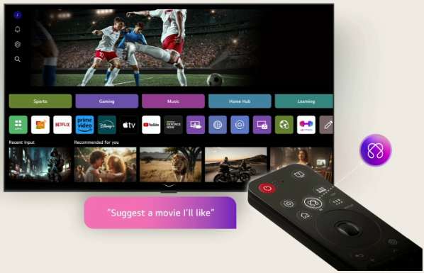 El único con puntero inalámbrico para una navegación más fácil, cómoda y rápida⁽¹⁾. Además, con el nuevo botón de control de IA puedes activar el asistente por voz inteligente y controlar totalmente tu TV y tu hogar⁽²⁾
