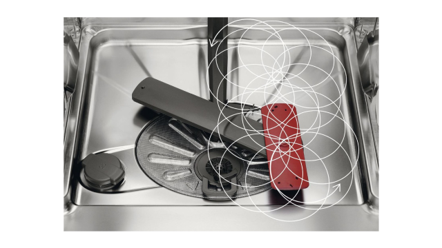 El innovador brazo aspersor satélite proporciona un alcance de agua hasta tres veces mayor que un brazo convencional, gracias a su doble rotación. De esta forma, el agua llega a todos los rincones del lavavajillas, asegurando una limpieza exhaustiva incluso en las piezas más difíciles.
