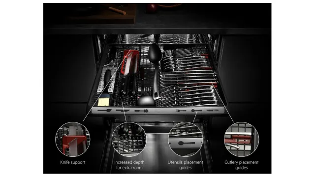 Aprovecha al máximo el espacio interior con la bandeja MaxiFlex, pensada para utensilios y herramientas de cualquier tamaño o forma. Sus separadores ajustables y su gran profundidad permiten personalizar cada carga y obtener una limpieza perfecta en cada ciclo.