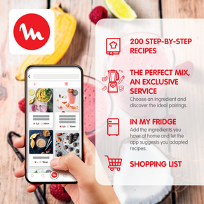 La aplicación gratuita Moulinex ofrece más de 300 recetas, además de nuestro exclusivo servicio Perfect Mix para encontrar nuevos y deliciosos maridajes de ingredientes y mucho más.
