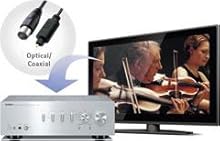 El A-S301 está equipado para la entrada de audio digital con terminales tanto óptico como coaxial. El terminal óptico permite recibir el audio de un televisor y el coaxial el audio de un reproductor Blu-ray. El audio sigue así en formato digital, garantizándole un sonido dinámico, puro y natural con todas sus fuentes de entretenimiento, ya sean programas deportivos como películas o conciertos.